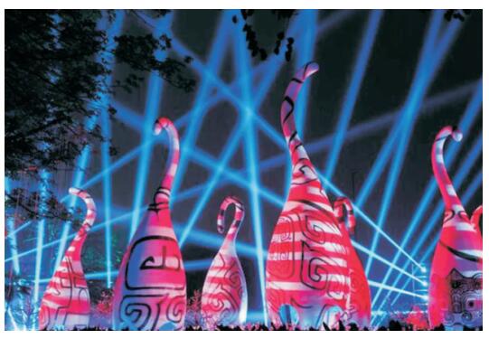 原始之光.火山,本次灯光节的首张王牌,长12米、高4米,用灯光模拟巨型火山,单是看设计效果就感觉场面非常震撼。