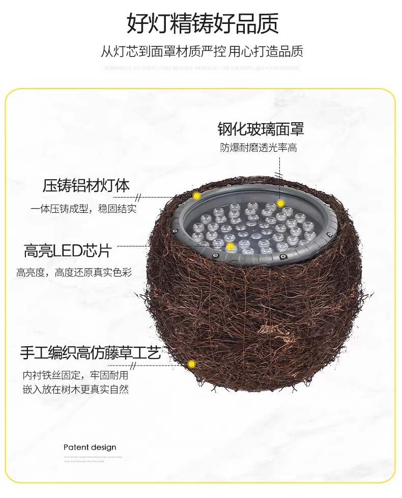 产品尺寸:Φ130*H150mm(详情请咨询)灯具功率:9W|12W|15W|18W灯光颜色:正白|暖白|红|黄|蓝|绿|七彩|适用场所:建筑物外观照明、景观照明、标识与指示性照明、室内空间展示照明、娱乐场所及舞台照明、视频屏幕、酒店外墙、广场夜景、园林亮化、室内装饰、户外泛光等…