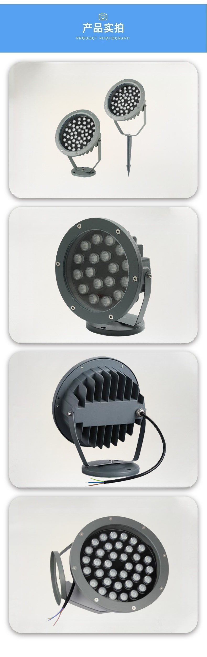 产品尺寸:Φ130*H170(详情请咨询)灯具功率:3W|5W|6W|9W|12W|15W|18W|24W|36W灯光颜色:正白|暖白|红|黄|蓝|绿|七彩适用场所:建筑物外观照明、景观照明、标识与指示性照明、室内空间展示照明、娱乐场所及舞台照明、视频屏幕、酒店外墙、广场夜景、园林亮化、室内装饰、户外泛光等…