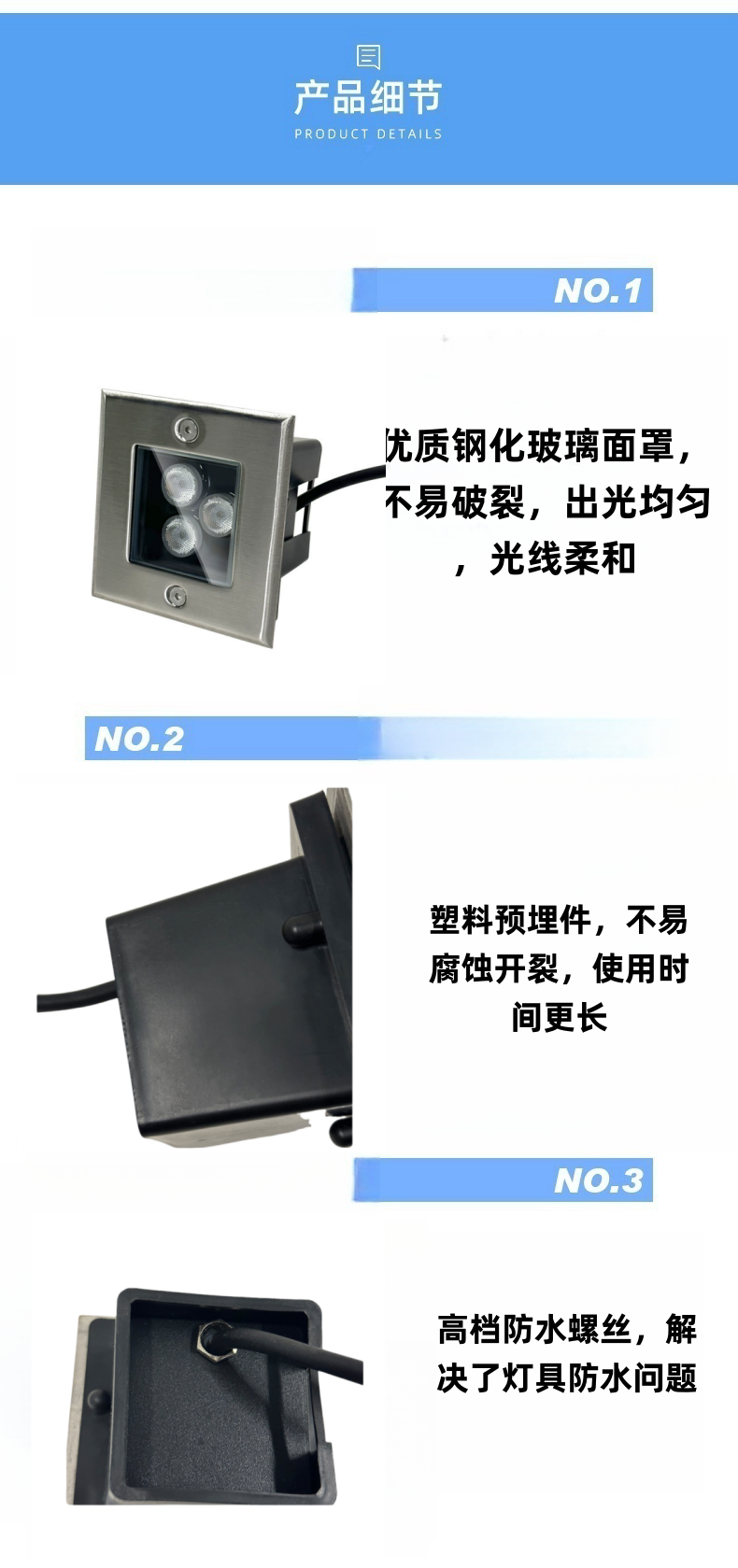 产品尺寸:100*100*H75mm灯具功率:3W灯光颜色:正白|暖白|红|黄|蓝|绿|适用场所:广泛用于广场、户外公园、休闲场所等户外照明,以及公园绿化、草坪、广场、庭院、花坛、步行街装饰,瀑布、喷泉水底等场所夜景照明…